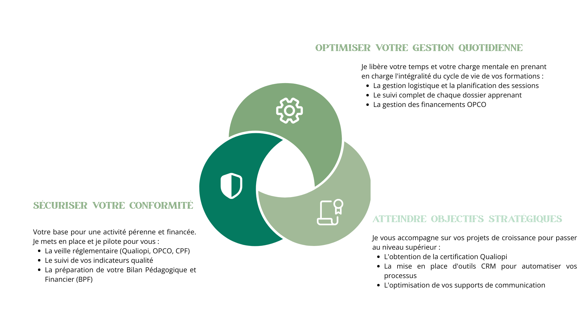 Avec une gestion administrative fluide et professionnelle, vous pouvez enfin vous concentrer sur la croissance de votre organisme de formation. Prospection, dĂ©veloppement de nouveaux programmes, partenariats… tout devient possible quand vous n’ĂȘtes plus submergĂ© par les tĂąches administratives.
